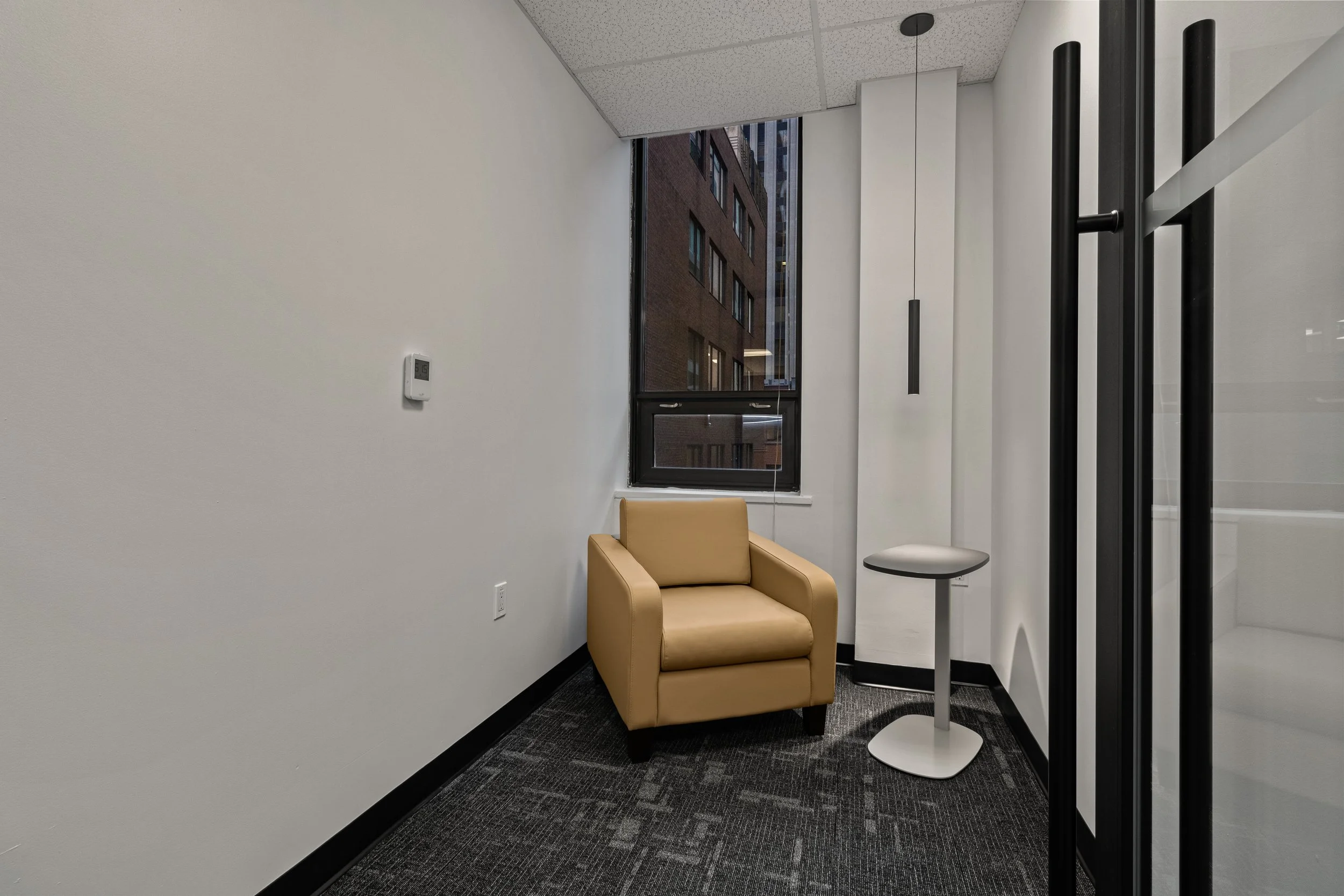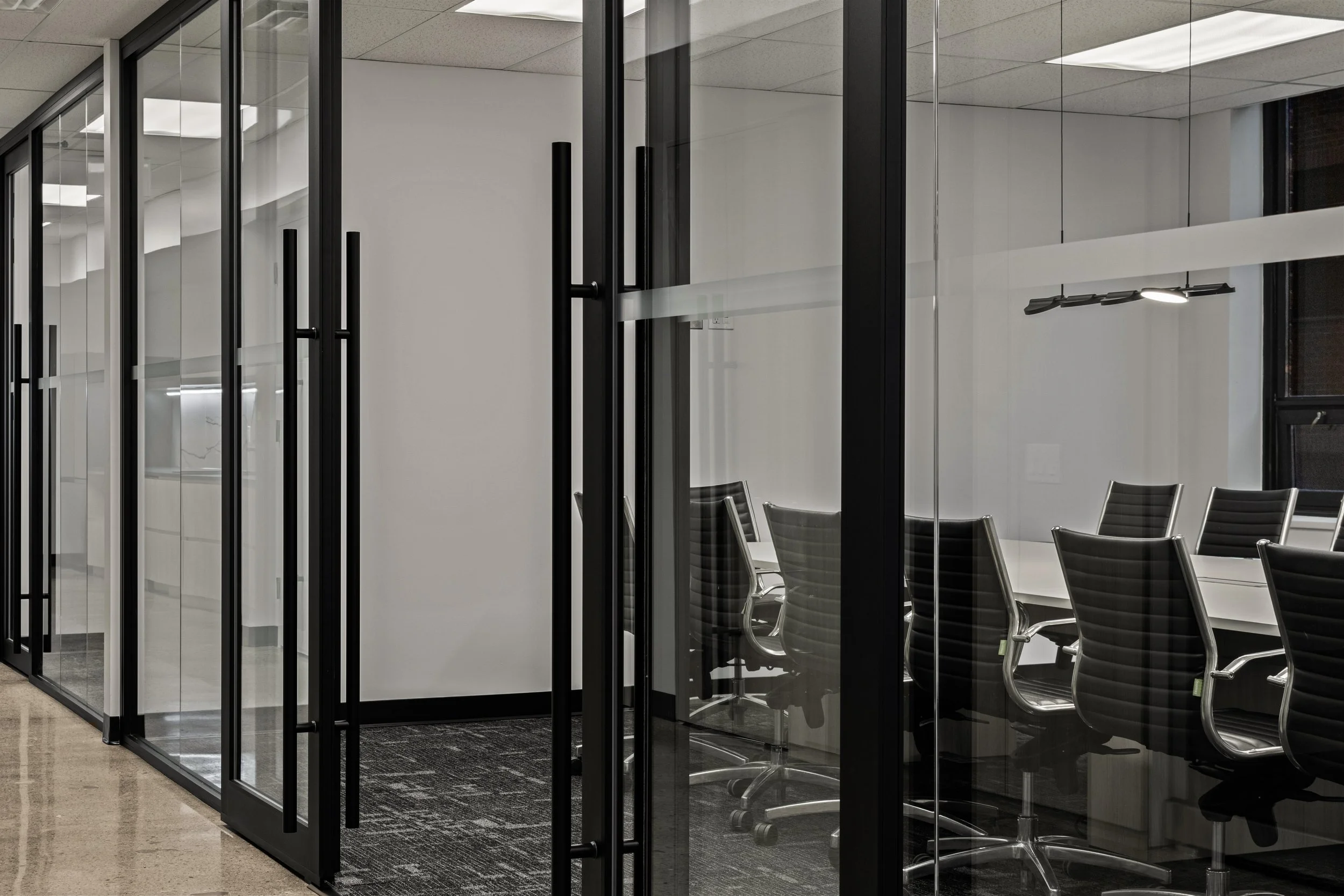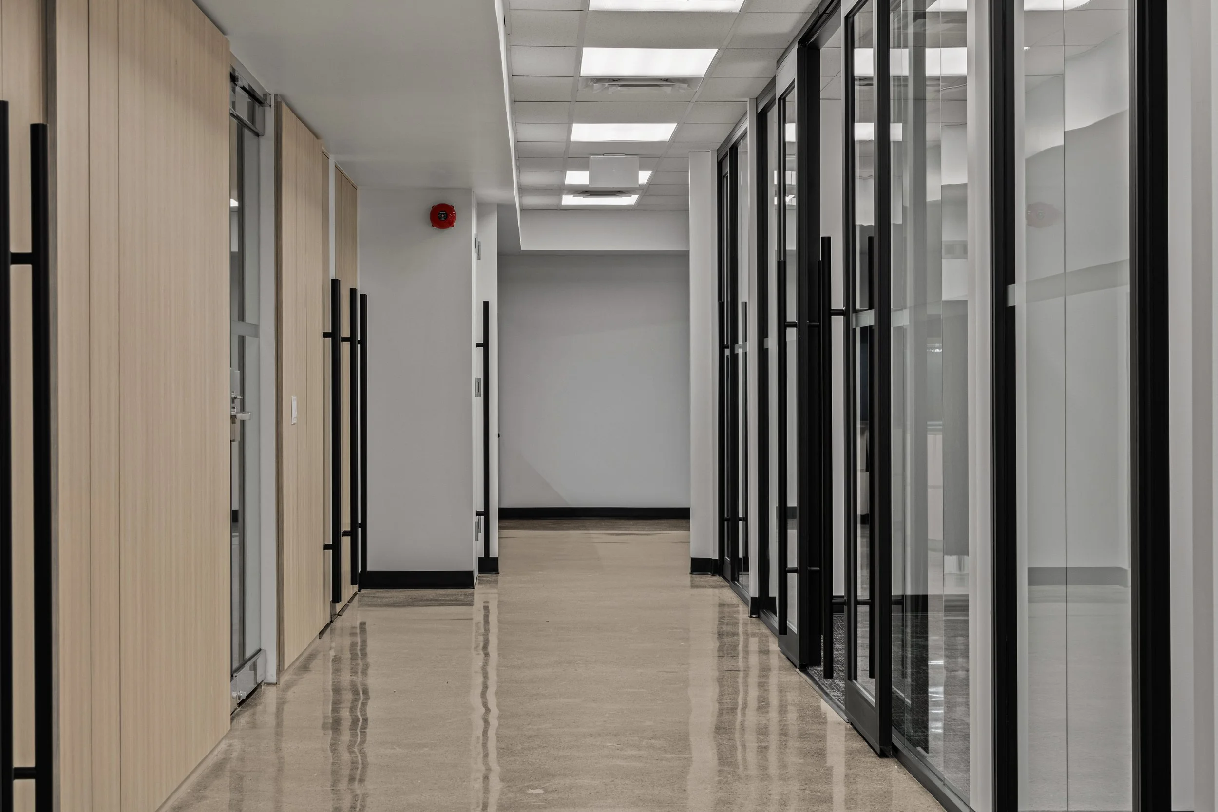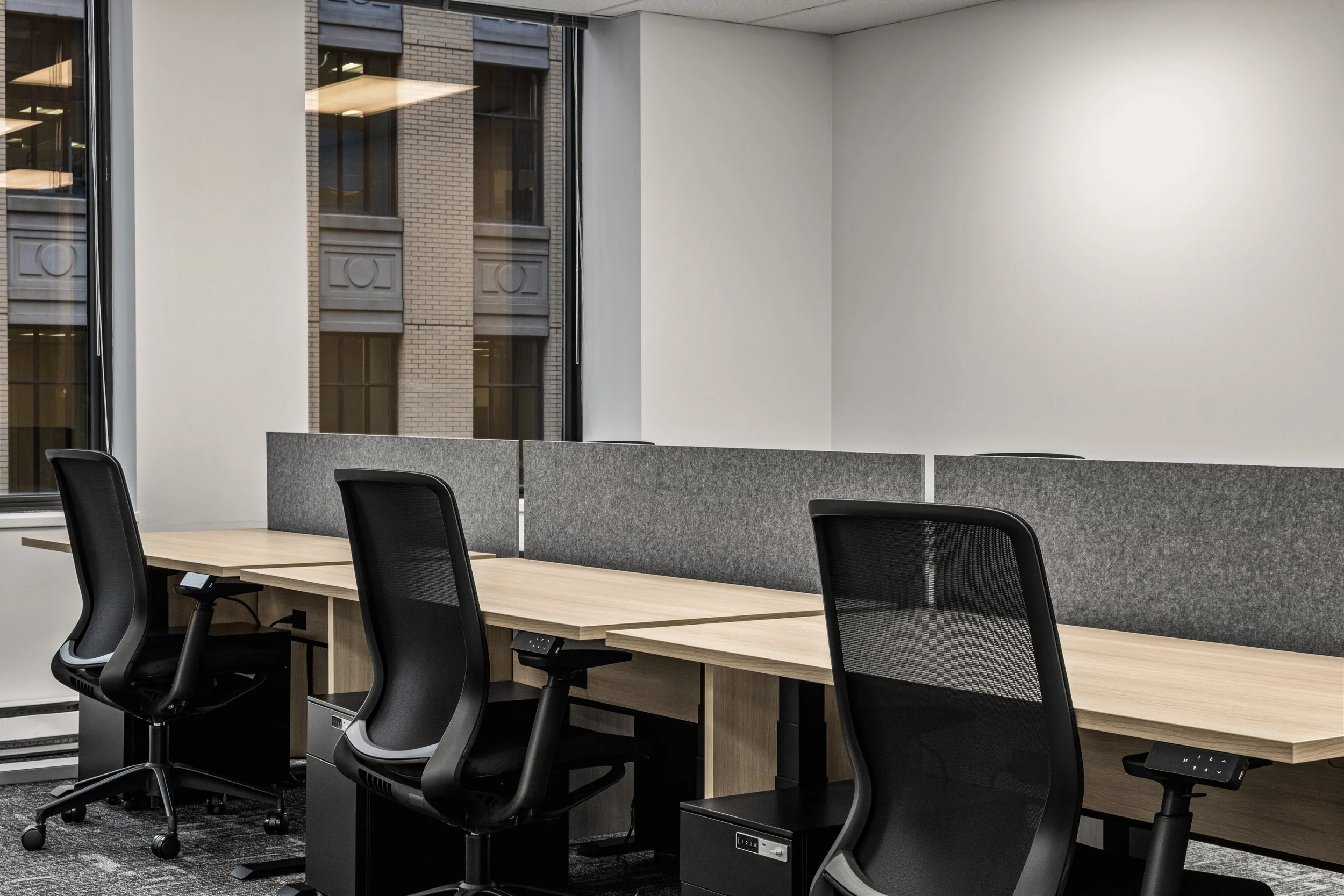 The design blends refined detailing and functionality, featuring glass-enclosed meeting rooms, integrated wall panelling, and high-end finishes that elevate tenant appeal and leasing potential. Despite tight downtown logistics and complex scheduling, Primary Construction delivered the turnkey build in just 10 weeks, coordinating closely with Dream’s team and KGRN Inc. to ensure seamless execution and quality craftsmanship.